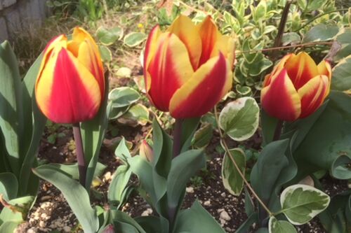 家のまわりの花の散歩道。散歩というよりとりあえず歩いた、と言ったワンコ連れの散歩。ご近所さんのお花たちに春を感じさせていただきました。チューリップも見つけましたよ。